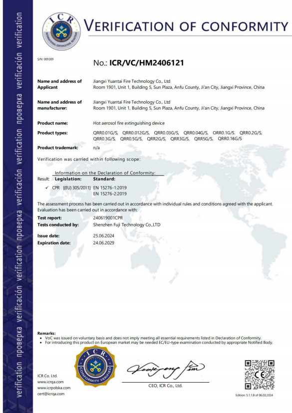 公司位于江西省吉安市,我们一家专注研发生产的自动灭火装置制造商,产品涵盖热气溶胶灭火装置、全氟己酮灭火装置以及智能无线电力自动灭火系统,为客户打造全新的物联网化产品体验、开发新的应用场景。